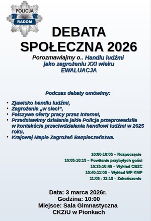 Komenda Miejska Policji w Radomiu zaprasza na debatę społeczną.