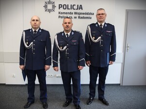 Podczas uroczystej zbiórki Komendant Wojewódzki Policji zs. w Radomiu nadinsp. Waldemar Wołowiec wręczył rozkazy personalne o powołaniu na stanowisko I Zastępcy Komendanta Miejskiego Policji w Radomiu podinsp. Sebastianowi Kopyckiemu oraz Zastępcy Komendanta Miejskiego Policji w Radomiu nadkom. Rafałowi Różalskiemu.