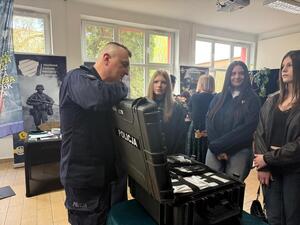 Policjanci zachęcają młodzież do służby w Policji podczas dni otwartych szkoły