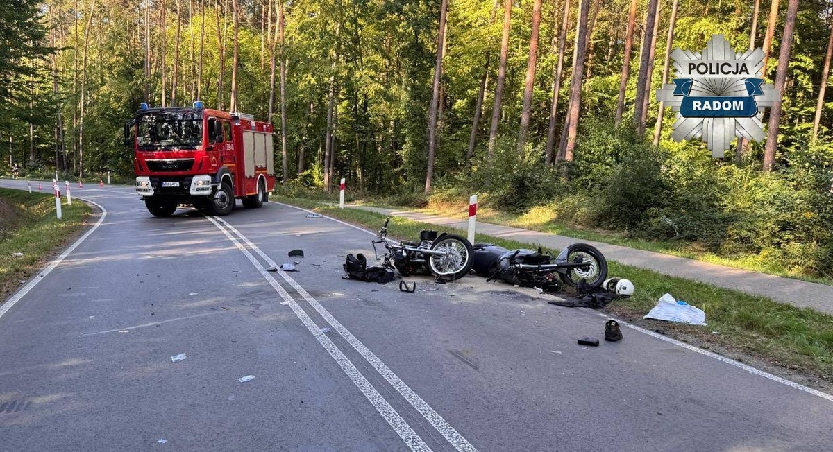 Oficer dyżurny Komendy Miejskiej Policji w Radomiu w piątek otrzymał zgłoszenie dotyczące wypadku na terenie gminy Jastrzębia. Jak wynika ze wstępnych ustaleń, 65-latek kierujący motocyklem marki Suzuki w Lesiowie na łuku drogi stracił panowanie nad pojazdem, zjechał na przeciwny pas ruchu doprowadzając do czołowego zderzenia z motocyklem marki Bmw, których kierował 19-latek. Obaj kierowcy zostali przewiezieni do szpitala, gdzie 65-latek zmarł.