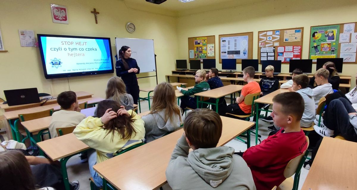 Podczas wszystkich prelekcji policjanci omówili, czym jest hejt, jakie mogą być jego formy oraz jakie mogą być jego skutki, zarówno dla ofiar, jak i dla sprawców. Uczniowie dowiedzieli się, jak rozpoznawać mowę nienawiści, jak reagować na przemoc w sieci i gdzie szukać pomocy. Policjanci podkreślali kwestie odpowiedzialności za wyśmiewanie i szydzenie z kogoś w świecie wirtualnym.