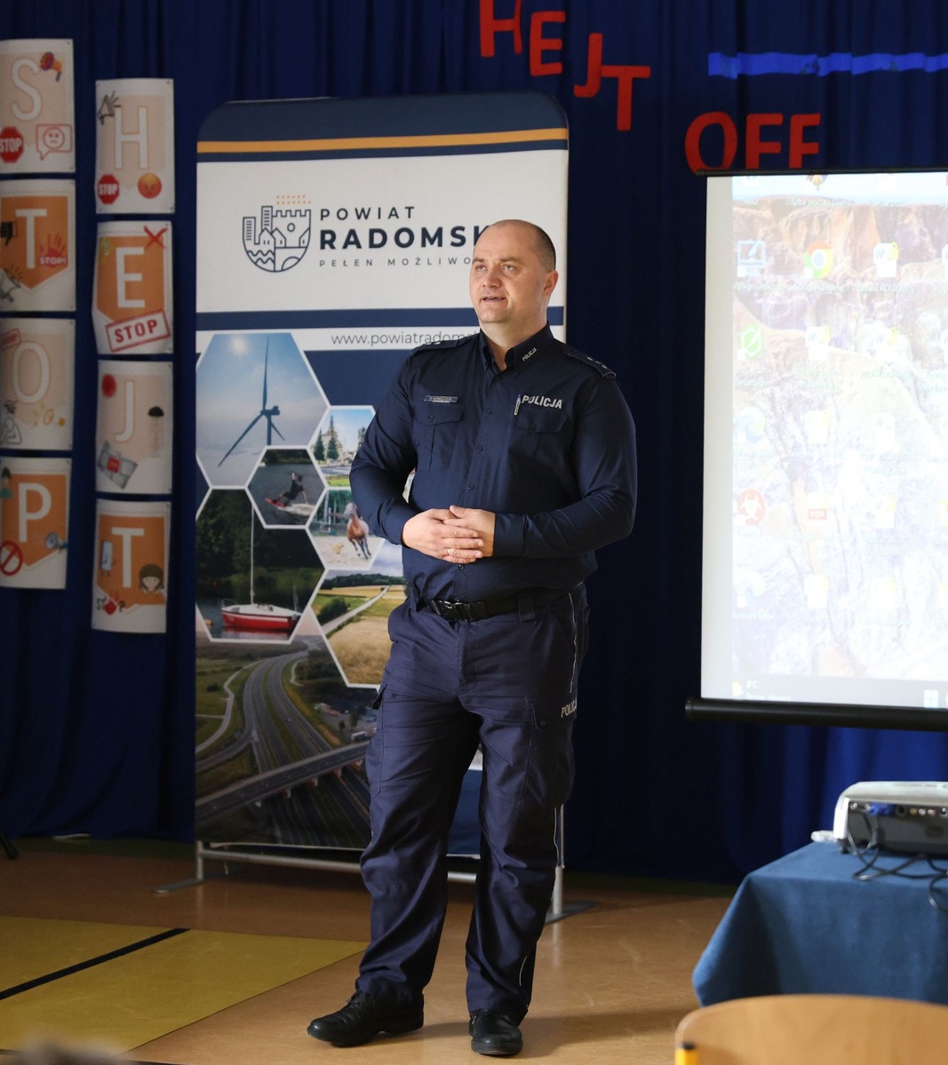 Kampania pn. „Hejt OFF” realizowana jest przez Wydział Zdrowia i Spraw Społecznych Starostwa Powiatowego w Radomiu, a także m.in. Komendę Miejską Policji w Radomiu, Komendę Miejską Państwowej Straży Pożarnej i Wojskowe Centrum Rekrutacji w Radomiu. Spotkania realizowane będą w 13 gminach do 29 października 2025 roku. Głównym celem kampanii jest wzrost wiedzy o bezpieczeństwie.