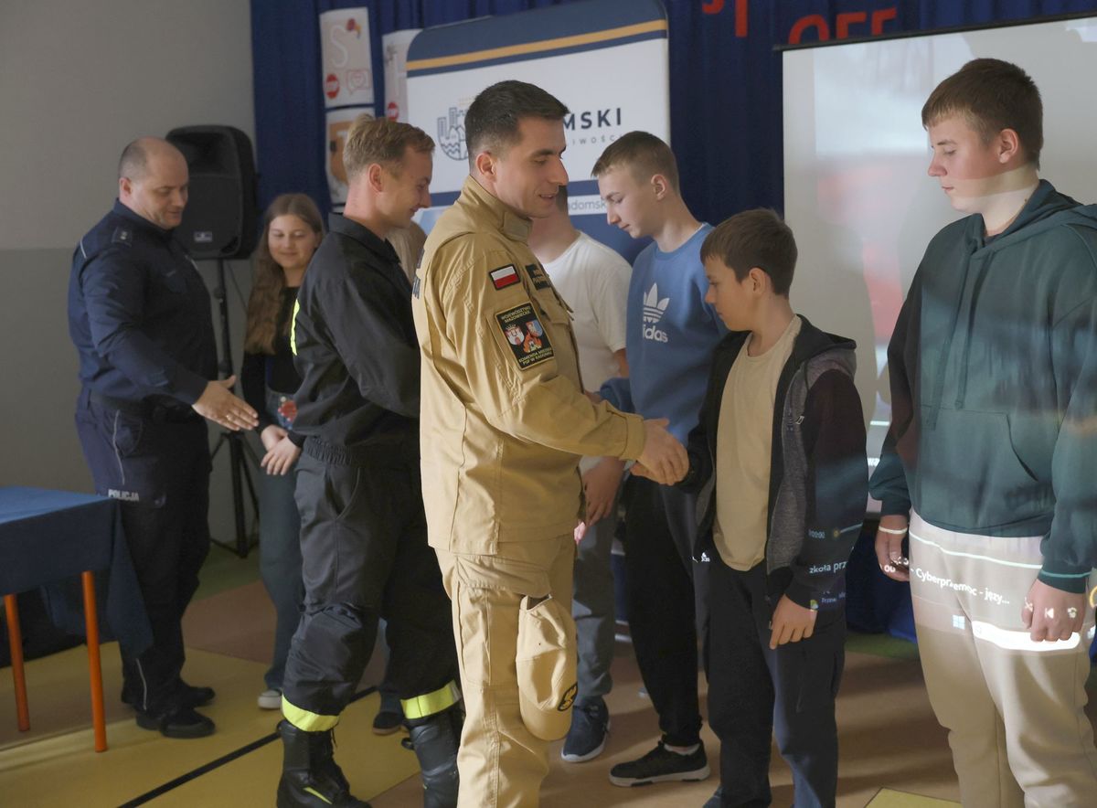 Policjanci z Wydziału Prewencji omówili m.in. zagrożenia, które niesie ze sobą niewłaściwe korzystanie z internetu, a w szczególności problemów takich jak hejt i cyberprzemoc. Przedstawili również kwestie związane z odpowiedzialnością prawną osób nieletnich.