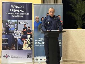 Wśród prelegentów byli m.in. kom. Rafał Łyżwiński Zastępca Naczelnika Wydziału d/w z Przestępczością Gospodarczą, asp. Dawid Sekuła instruktor technik i taktyk interwencji z Wydziału Wspomagającego oraz mł.asp. Karolina Karcz i kom. Przemysław Kowalczyk z Wydziału Prewencji, a także psycholog Agata Pajączkowska.
