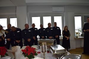 Następnie Kapelan Garnizonu Mazowieckiej Policji ks. Jarosław Rożek poprowadził wspólną modlitwę nadając spotkaniu wyjątkowy świąteczny charakter.