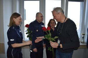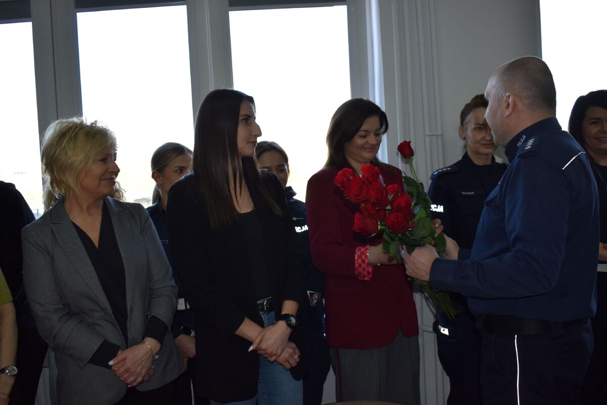 Komendanci i Naczelnicy złożyli życzenia i wręczyli róże wszystkim paniom. Życzyli wszelkiej pomyślności, aby każdy dzień wypełniony był radością i uśmiechem. Komendant przy tej okazji podziękował również za codzienną pracę.