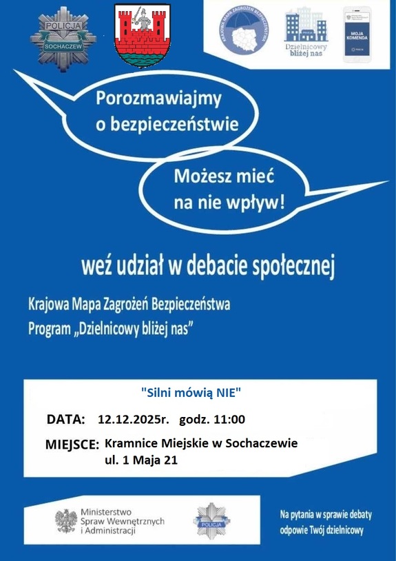 Już 12 grudnia w sali konferencyjnej w Kramnicach Miejskich w Sochaczewie odbędzie się debata inauguracyjna pn. "Silni mówią NIE". Wydarzenie jest skierowane do młodzieży, ale również tych osób, które chcą poszerzyć swoją wiedzę na temat współczesnych zagrożeń i podejmowania odpowiedzialnych decyzji.