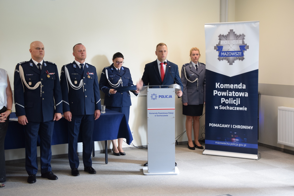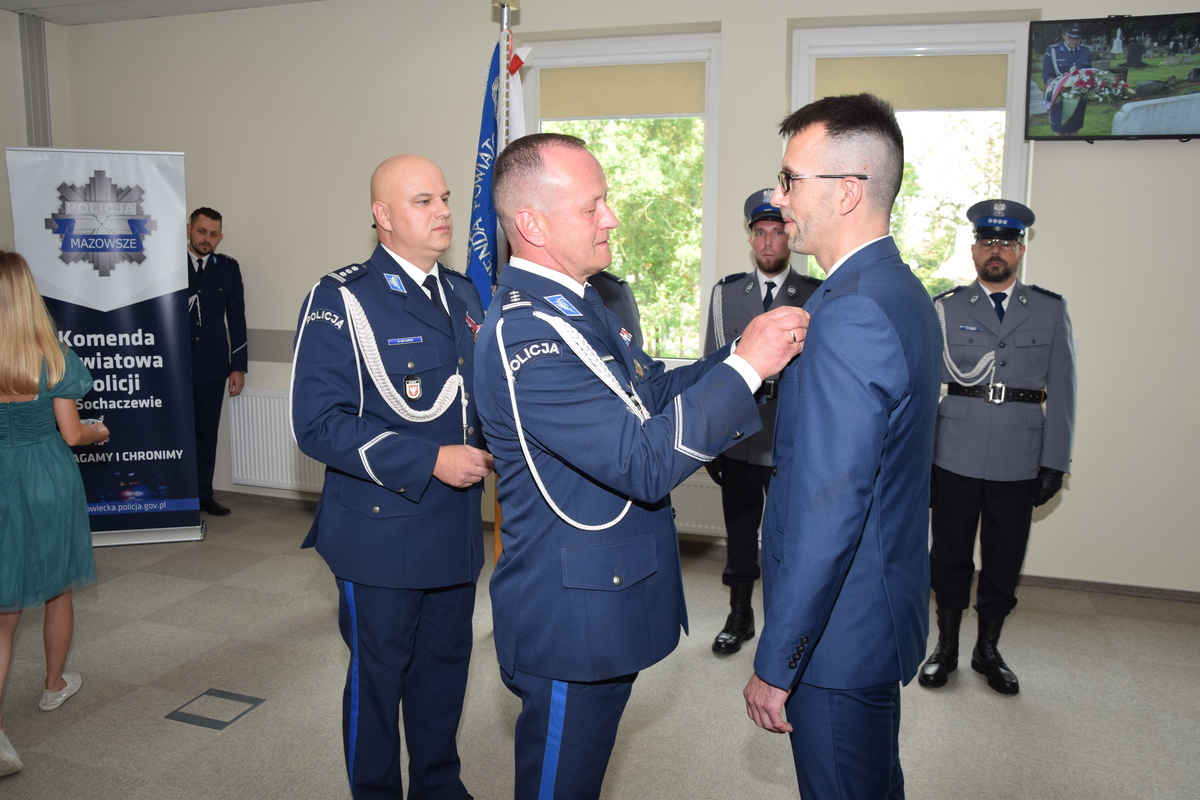 W dalszej części uroczystości Zastępca Komendanta Wojewódzkiego Policji zs. w Radomiu insp. Jerzy Sztuc wręczył odznaczenia resortowe. Brązowy medal „Za zasługi dla Policji” odebrał Marcin Gawroński – wieloletni pracownik Zespołu Kadr i Szkolenia Komendy Powiatowej Policji w Sochaczewie.