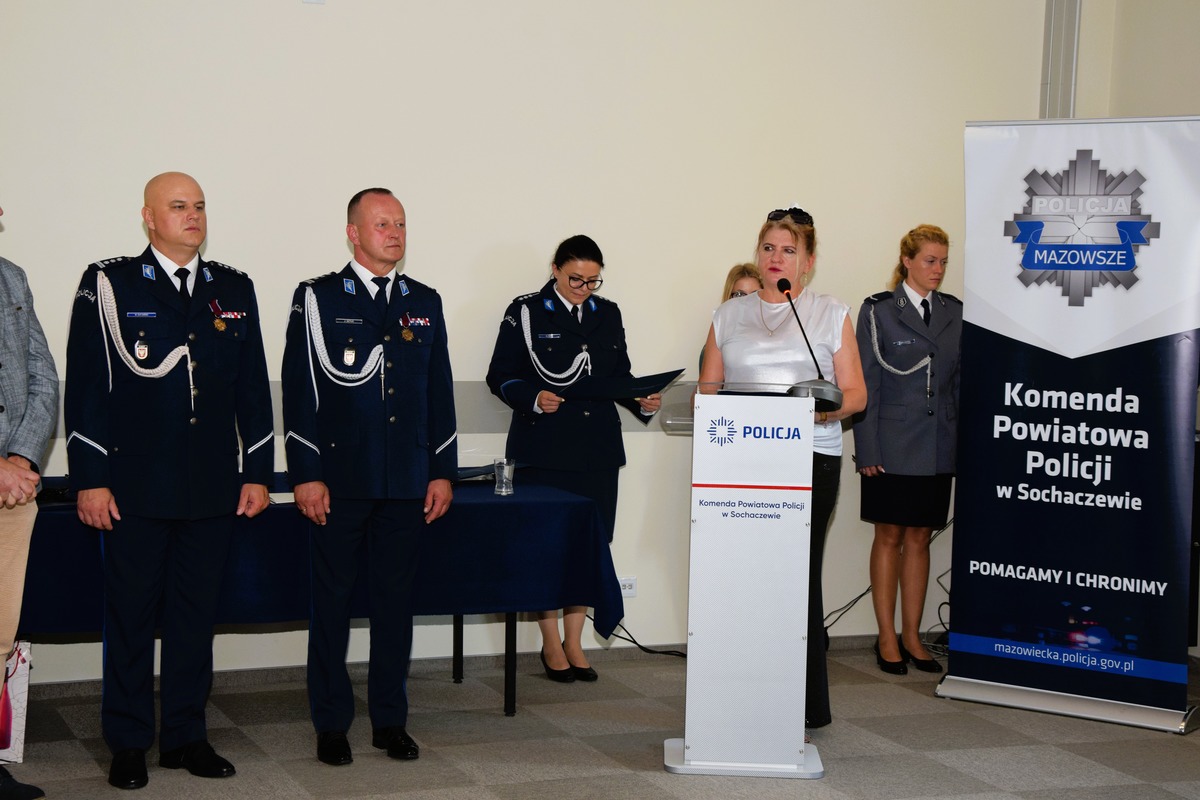 Starosta Sochaczewski Jolanta Gonta podziękowała funkcjonariuszom za trud wkładany w wypełnianie codziennych obowiązków i życzyła bezpieczeństwa podczas służby.