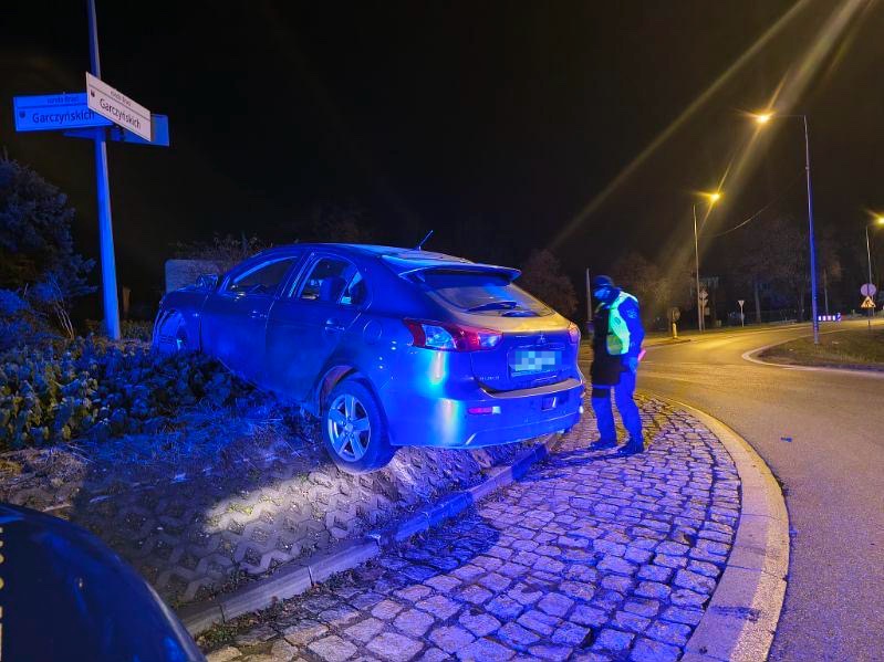 Nietrzeźwy kierowca uderzył w wyspę na rondzie i oddalił się z miejsca. Później zwrócił się do policjanta z absurdalną prośbą… Teraz grozi mu do 3 lat pozbawienia wolności.