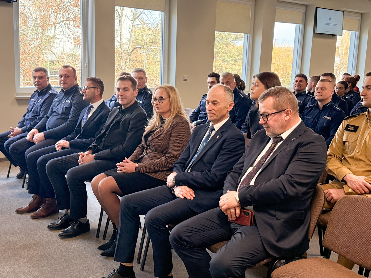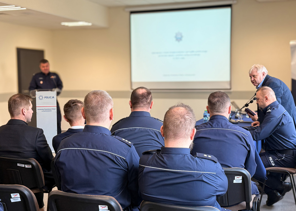 Podczas odprawy Komendant Powiatowy Policji w Sochaczewie mł. insp. Mariusz Gibała przedstawił analizę stanu bezpieczeństwa na terenie powiatu sochaczewskiego. Omówił wyniki osiągnięte przez sochaczewskich policjantów w poszczególnych obszarach służby, a także wskazał najważniejsze wyzwania i problemy, z jakimi funkcjonariusze mierzą się w codziennej pracy. Komendant podkreślił również znaczenie współpracy z samorządami oraz podziękował przedstawicielom lokalnych władz za dotychczasowe wsparcie i bardzo dobrą współpracę na rzecz poprawy bezpieczeństwa mieszkańców powiatu.