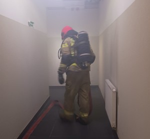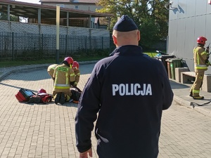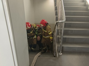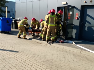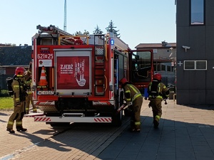 Zawiadomieni o pożarze strażacy po przyjeździe do komendy przystąpili do gaszenia pożaru. W trakcie działań w budynku komendy Policji, gdzie doszło do awarii instalacji elektrycznej i pojawiło się zagrożenie pożarowe, strażacy w zadymionym pomieszczeniu odnaleźli nieprzytomną osobę. Okazało się, że poszkodowany próbował samodzielnie ugasić ogień. Strażacy natychmiast ewakuowali go w bezpieczne miejsce.