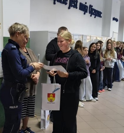Policjantka a prywatnie mama, angażując się w działania na rzecz bezpieczeństwa, pokazała, że policjant to nie tylko osoba dbająca o porządek i bezpieczeństwo na drodze, ale także edukator i przyjaciel najmłodszych. Obecność policjantki podczas ogłoszenia wyników konkursu i wręczenia nagród była dla uczniów dużym wyróżnieniem i inspiracją do dalszego poszerzania wiedzy o bezpieczeństwie.