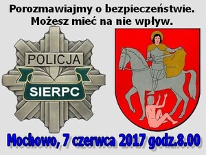 - Porozmawiajmy o bezpieczeństwie Gminy Mochowo Samorząd Gminy Mochowo oraz Komendant Powiatowy Policji w Sierpcu serdecznie zapraszają wszystkich mieszkańców Gminy Mochowo na debatę o bezpieczeństwie, która odbędzie się w środę 7 czerwca 2017 roku o godzinie 8.00 w Sali Konferencyjnej Urzędu Gminy w Mochowie.