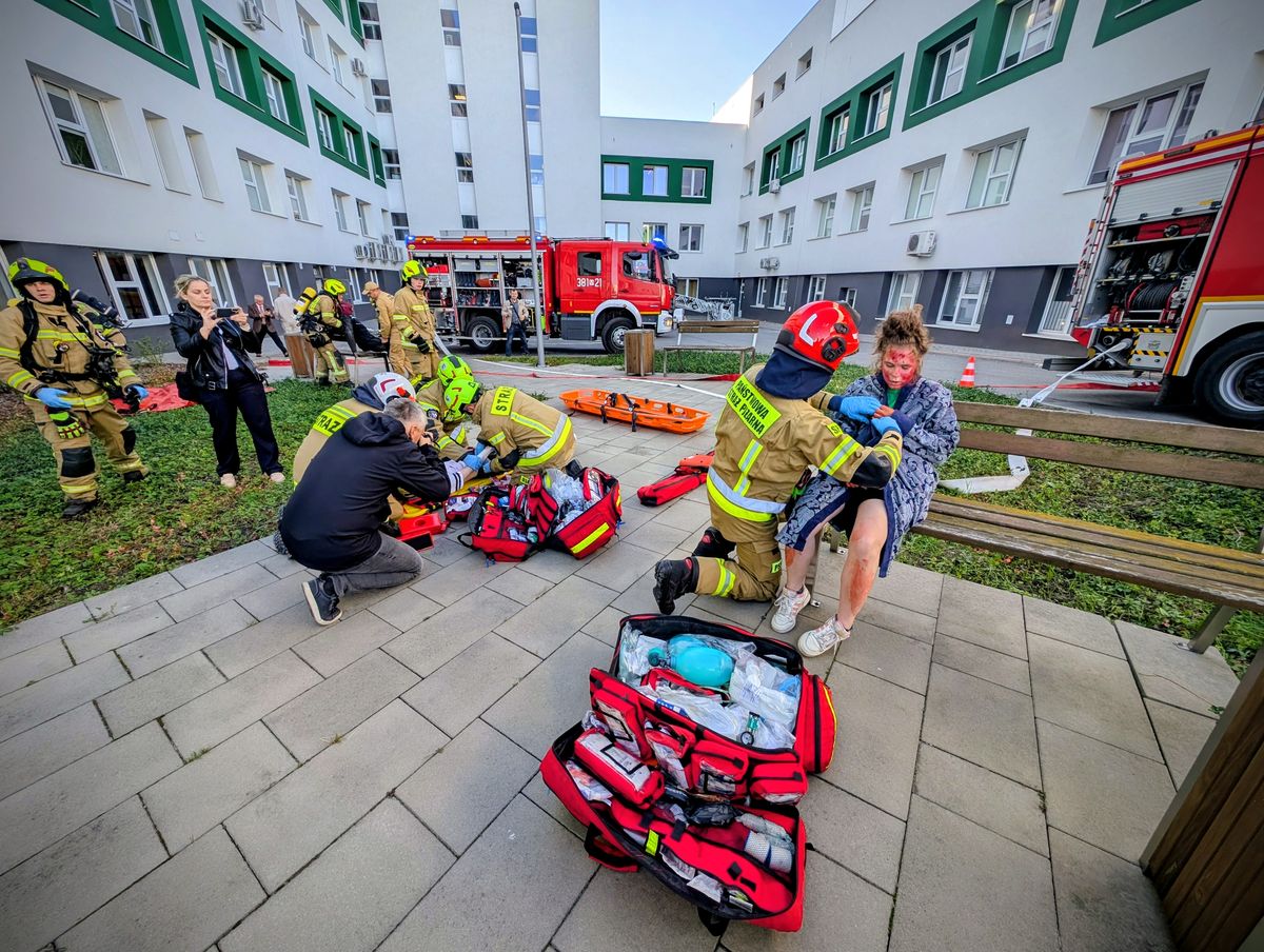 Choć na VI piętrze szpitala paliło się tylko „na niby”, emocje były prawdziwe. Kamery i drony rejestrowały przebieg akcji, by później można było wyciągnąć wnioski i poprawić procedury.