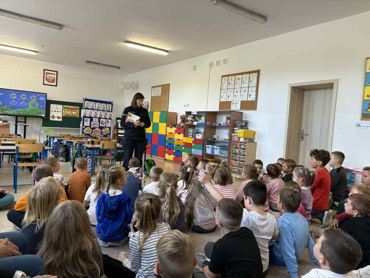 Podczas zajęć mł. asp. Barbara Jastrzębska spotkała się z dziećmi w bibliotece, by porozmawiać o tym, jak dbać o swoje bezpieczeństwo, zarówno w domu, jak i na drodze czy podczas zabawy. Policjantka, korzystając z opowieści o przygodach sympatycznego liska Fenka, tłumaczyła najmłodszym, jak należy postępować w różnych codziennych sytuacjach.