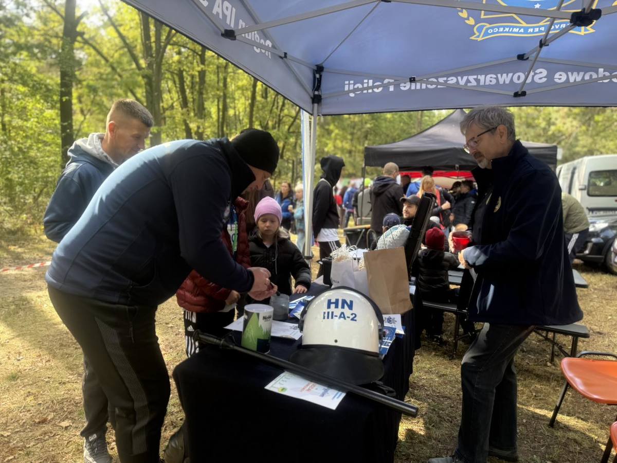 Na miejscu nie mogło zabraknąć policyjnego stoiska profilaktycznego, które cieszyło się dużym zainteresowaniem zarówno dorosłych, jak i dzieci. Uczestnicy mogli poznać zasady bezpiecznego poruszania się po drogach, sprawdzić, jak działają alkogogle i jak alkohol wpływa na percepcję, zostawić pamiątkowy odcisk palca, porozmawiać o bezpieczeństwie pieszych i rowerzystów, a także dowiedzieć się więcej o codziennej służbie funkcjonariuszy i możliwościach wstąpienia w szeregi Policji.
