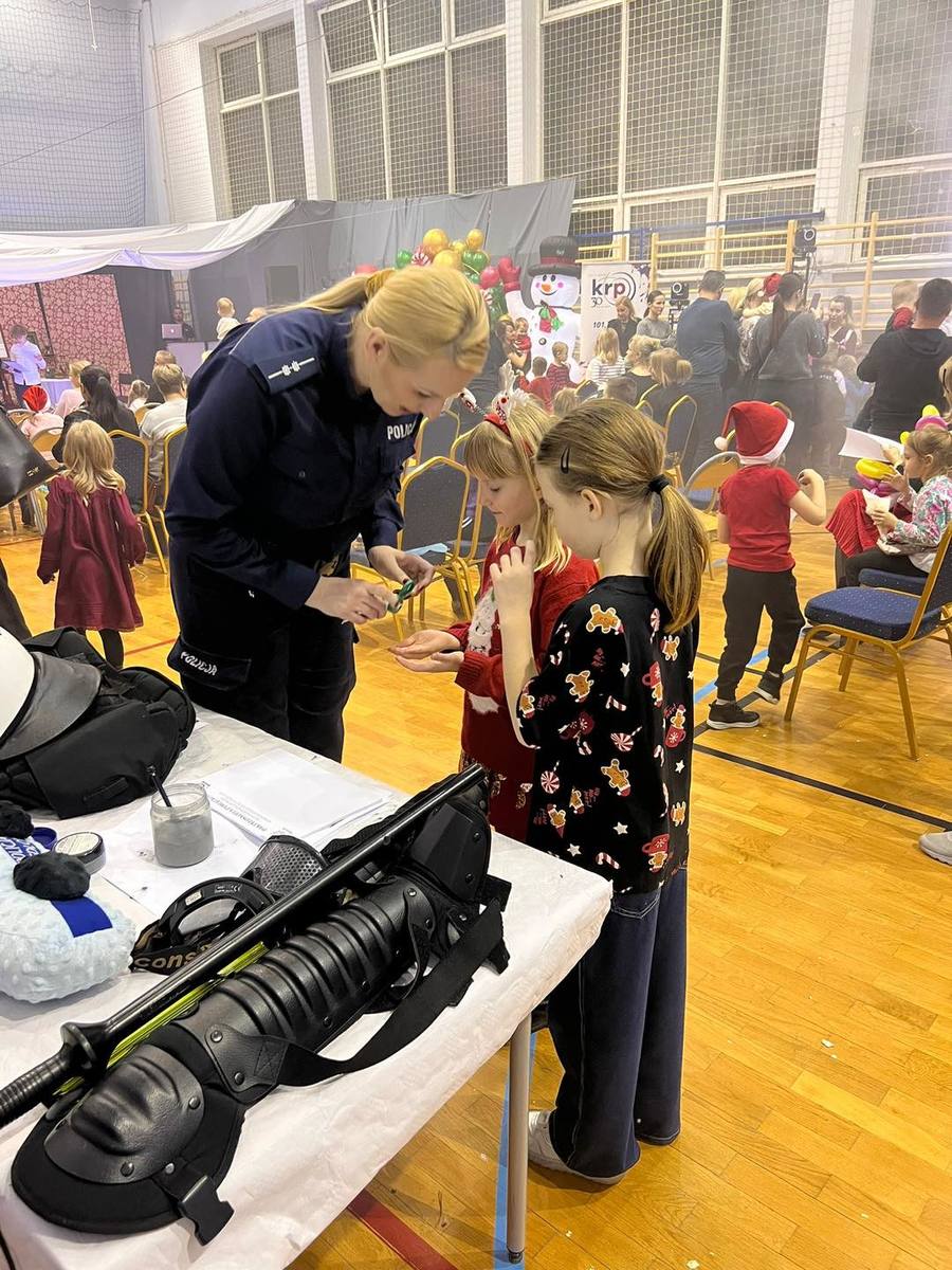 Jak co roku policyjne stoisko cieszyło się ogromnym zainteresowaniem najmłodszych uczestników. Dzieci chętnie poznawały elementy wyposażenia policjanta, zadawały pytania i z ciekawością słuchały opowieści o policyjnej pracy. Mundurowi przygotowali także mini quizy i krótkie animacje, dzięki którym w przystępny sposób przekazywali wiedzę na temat bezpieczeństwa.