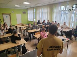 Strażacy z Komendy Miejskiej PSP w Siedlcach, w ramach wspólnego działania, omawiają z młodzieżą zasady postępowania w sytuacjach zagrożenia oraz pokazują, jak prawidłowo udzielać pierwszej pomocy przedmedycznej – takie praktyczne elementy są ważnym uzupełnieniem projektu „Świadomie i bezpiecznie w młodość” realizowanego w siedleckich szkołach ponadpodstawowych.