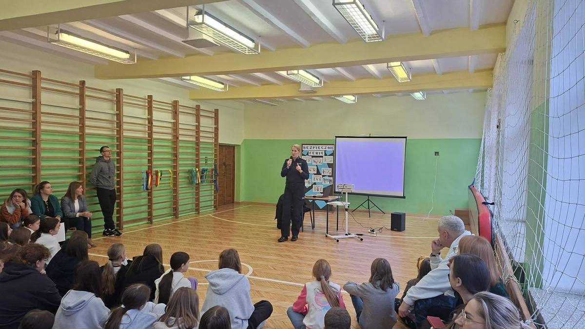 Podczas rozmów z uczniami policjanci omówili m.in. zasady bezpiecznego korzystania z lodowisk i ślizgawek, konieczność zachowania szczególnej ostrożności na drodze w zimowych warunkach, a także kwestie związane z bezpieczeństwem w domu, zwłaszcza w sytuacjach, gdy dzieci pozostają bez opieki dorosłych. Przypomniano również, jak prawidłowo reagować w sytuacjach zagrożenia oraz gdzie i w jaki sposób szukać pomocy, w tym jak korzystać z numerów alarmowych.