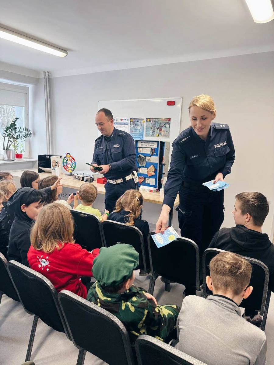 Policjanci rozmawiali z najmłodszymi o zasadach bezpiecznego wypoczynku zimowego, w tym o właściwym zachowaniu podczas zabaw na śniegu i lodzie, bezpiecznym poruszaniu się po drogach oraz znaczeniu noszenia elementów odblaskowych. Przypomniano również, jak reagować w sytuacjach zagrożenia oraz gdzie i w jaki sposób szukać pomocy.