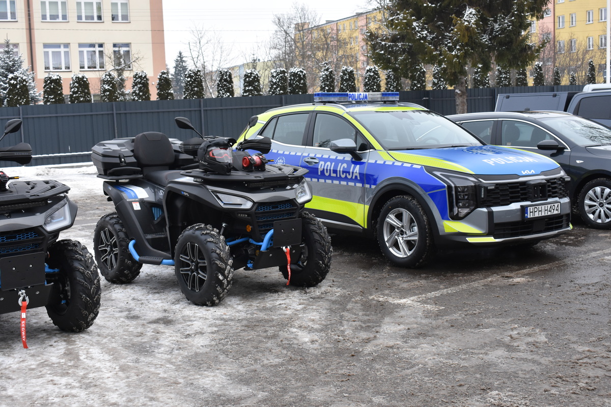 We wtorek (13 stycznia 2026 r.) policjanci z Komendy Powiatowej Policji w Sokołowie Podlaskim wzbogacili się o cztery nowe radiowozy oraz dwa quady wraz z przyczepą do ich transportu. Do służby trafił 1 oznakowany pojazd marki Kia Sportage oraz 3 nieoznakowane samochody marki Kia Ceed, Renault Trafic, ISUZU DMax.