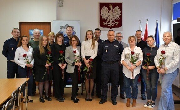 Komendant Powiatowy Policji w Szydłowcu mł. insp. Grzegorz Michorek wspólnie z Naczelnikami Wydziałów, funkcjonariuszami i pracownikami jednostki, złożyli życzenia od wszystkich mężczyzn, dla wszystkich Pań z szydłowieckiej jednostki z okazji „Dnia Kobiet”.
