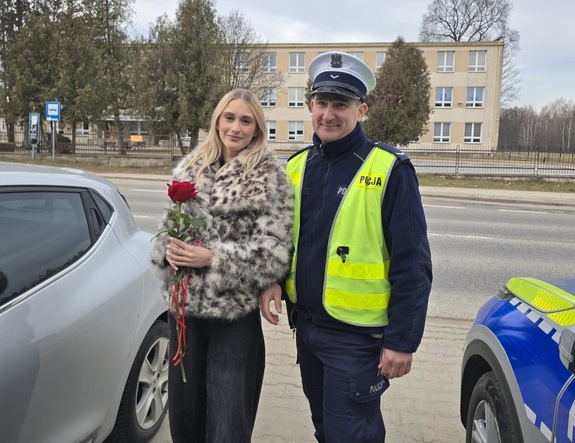 Kobieta za kierownicą łagodzi obyczaje. Jak co roku 8 marca policjanci z szydłowieckiej Policji dziękowali kobietom – uczestniczkom ruchu drogowego za ich życzliwość, rozwagę i ostrożność na drodze wręczając im kwiaty.