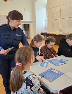 Funkcjonariuszka omówiła zasady konkursu plastyczno-filmowego „Zimowy Dekalog” zachęcając najmłodszych do udział. Regulamin i karta zgłoszenia dostępne na: www.policja.pl/bezpieczenstwo-w-zimie.