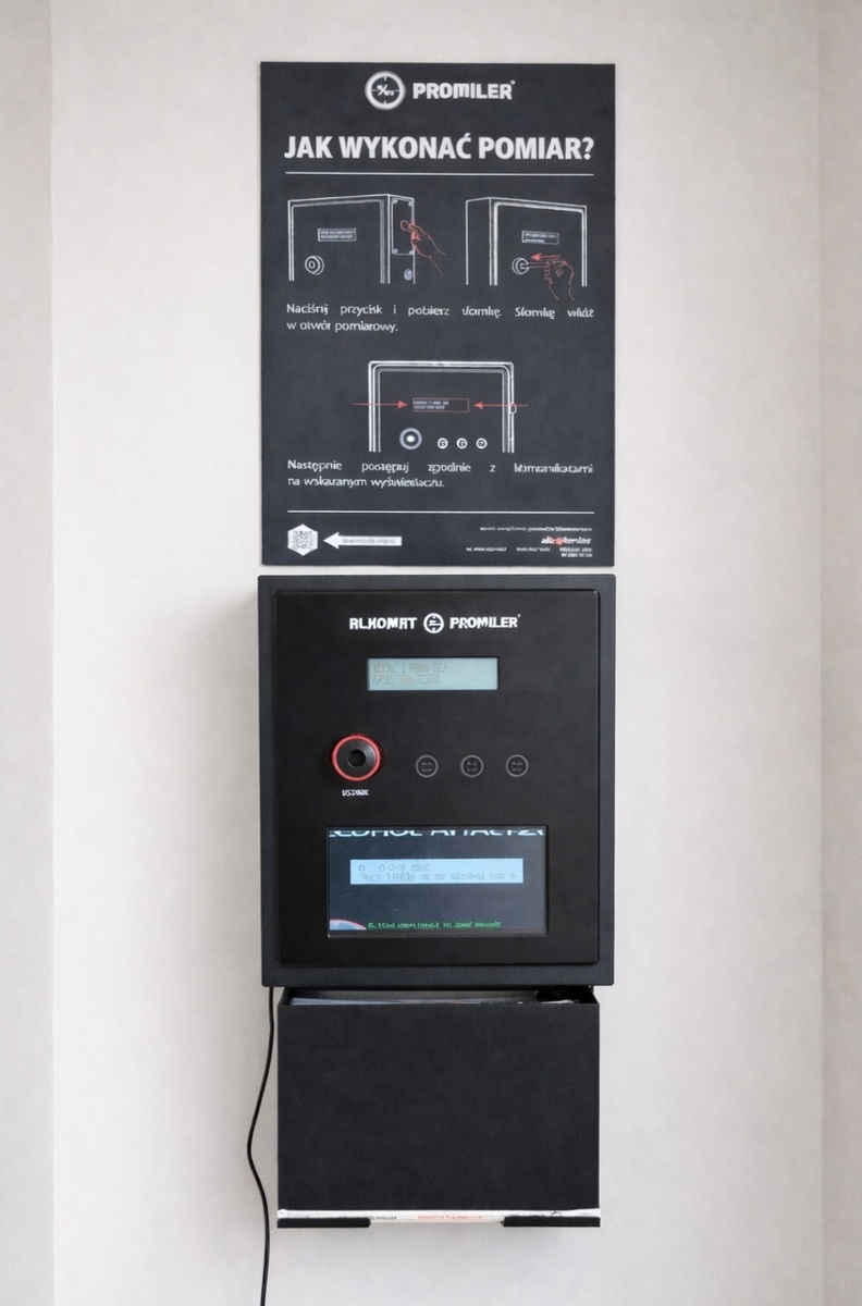 Alkomat znajduje się w poczekalni Komendy Powiatowej Policji w Szydłowcu. Jego obsługa nie wymaga angażowania mundurowych, aby sprawdzić stan swojej trzeźwości. Wystarczy wyjąć z zasobnika ustnik, umieścić w otworze urządzenia, nacisnąć przycisk z prawej strony i postępować dalej zgodnie z instrukcjami wyświetlanymi na ekranie. Wynik pojawi się na wyświetlaczu.