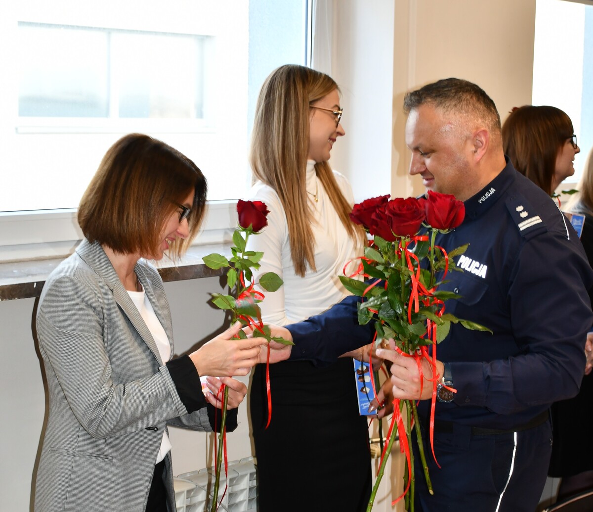 Z okazji obchodzonego w najbliższą niedzielę „Dnia Kobiet” Komendant Powiatowy Policji w Szydłowcu mł. insp. Grzegorz Michorek wraz z Naczelnikami Wydziałów, funkcjonariuszami i pracownikami szydłowieckiej komendy, złożyli życzenia i wręczyli róże wszystkim paniom. Życzyli wszelkiej pomyślności, aby każdy dzień wypełniony był radością i uśmiechem. Komendant przy tej okazji podziękował również za codzienną pracę.