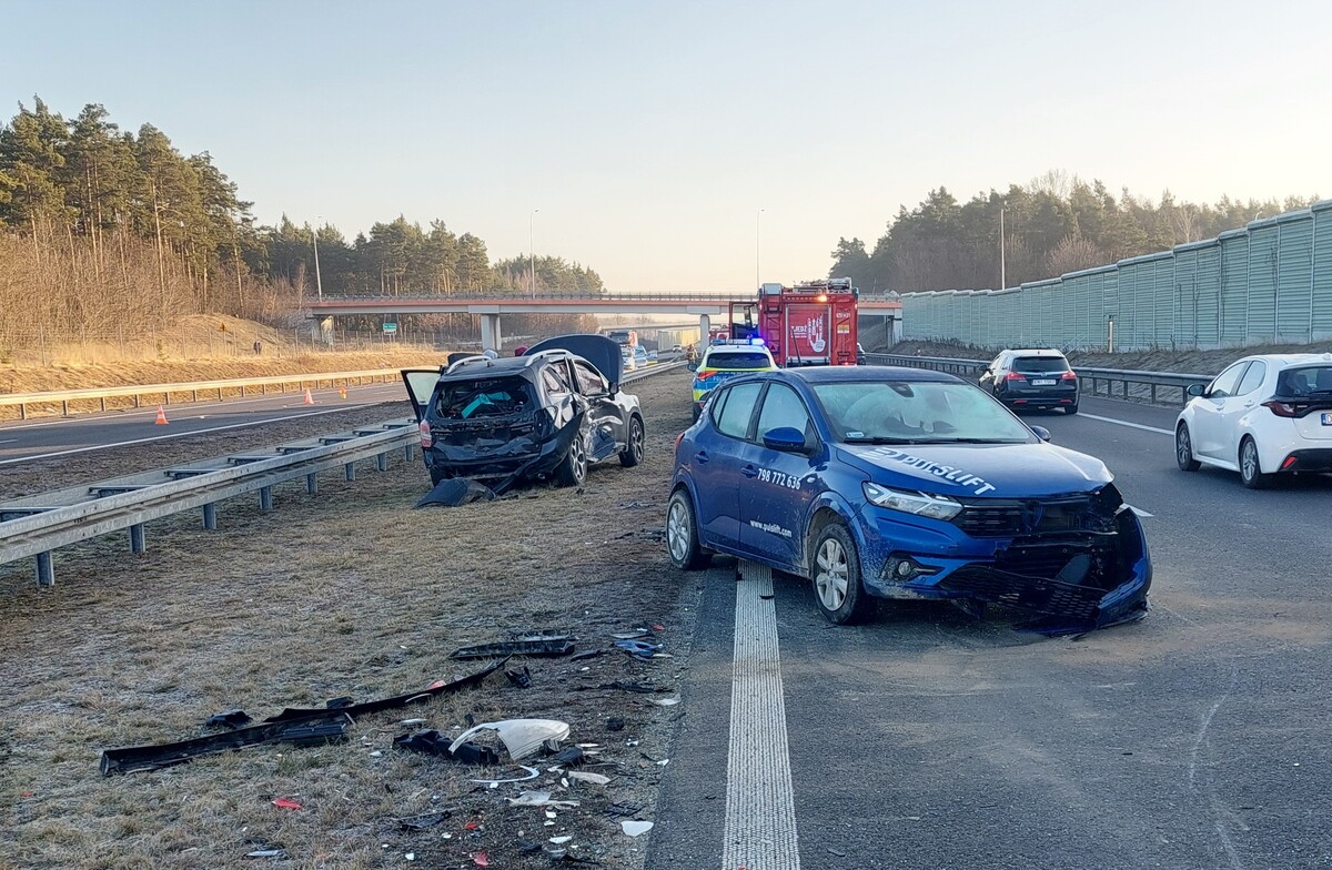 Następnie na zatrzymujące się pojazdy Subaru i Dacia najechał kierujący pojazdem Hyundai 38-letni mieszkaniec powiatu szczecińskiego. W wyniku tego zdarzenia pojazdy w nim uczestniczące na pewien czas zablokowały ruch na pasie w kierunku Warszawy. Kierujący pojazdem Hyundai jak również pozostali kierujący uczestniczący w tym zdarzeniu nie odnieśli obrażeń. Mężczyźni zostali poddani badaniu stanu trzeźwości z wynikiem negatywnym. Sprawca tego zdarzenia został ukarany mandatem karnym.