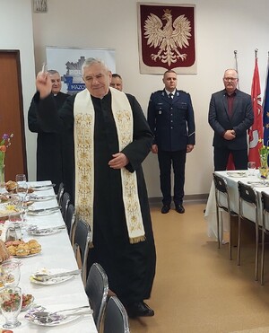 Uroczystość rozpoczęła się od krótkiego wystąpienia i świątecznych życzeń zdrowia, spokoju oraz bezpiecznej służby, po których nastąpiło symboliczne poświęcenie pokarmów. Na stołach nie zabrakło tradycyjnych potraw wielkanocnych, które podkreślały świąteczny charakter spotkania. Wspólne rozmowy przy stole sprzyjały integracji środowiska policyjnego oraz budowaniu jeszcze lepszej współpracy na co dzień.