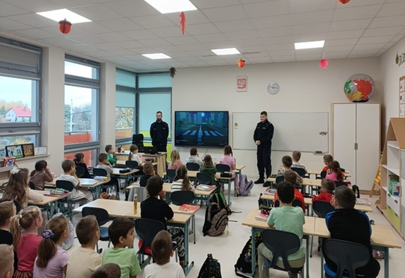 W środę 29 października w Szkole Podstawowej w Ruchnie odbyło się spotkanie z policjantami z Komendy Powiatowej Policji w Węgrowie. Tematem prelekcji było bezpieczeństwo w ruchu drogowym, a szczególna uwagę poświęcono zasadom, jakimi powinni kierować się najmłodsi uczestnicy dróg.