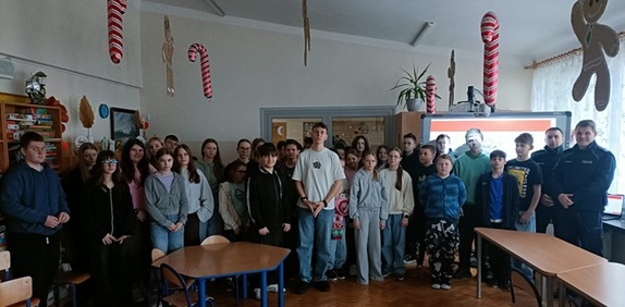 st. sierż. Przemysław Rydzewski dzielnicowy z Komendy Powiatowej Policji w Węgrowie odwiedził uczniów Szkoły Podstawowej w Ruchnie, aby porozmawiać o jednym najważniejszych wyzwań – przemocy rówieśniczej, w tym jej szczególnie groźnej formie, jaką jest cyberprzemoc.