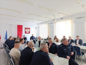 Roczna odprawa służbowa wyszkowskich policjantów z udziałem przedstawicieli lokalnego samorządu