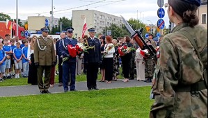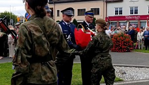 W imieniu wszystkich policjantów i pracowników cywilnych I Zastępca Komendanta Powiatowego Policji w Wyszkowie – podinsp. Mariusz Matusiak, wspólnie z innymi służbami mundurowymi, złożył kwiaty pod pomnikiem Gloria Victis w Wyszkowie, oddając hołd bohaterom Warszawy.