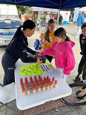 Z tej okazji wyszkowscy policjanci zorganizowali specjalne stoisko profilaktyczne. Czekały tam gry edukacyjne i konkursy z nagrodami, a mundurowi rozdawali uczestnikom odblaski, przypominając o ich znaczeniu dla bezpieczeństwa pieszych i rowerzystów.