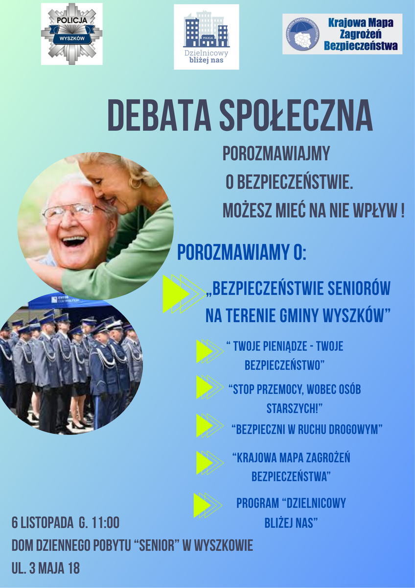 Podczas debaty funkcjonariusze Komendy Powiatowej Policji w Wyszkowie, przedstawią najnowsze metody działania oszustów oraz sposoby, jak skutecznie się przed nimi bronić oraz poruszą kwestie dotyczące bezpieczeństwa w ruchu drogowym.Zaprezentowana zostanie również Krajowa Mapa Zagrożeń Bezpieczeństwa. Uczestnicy debaty poznają szczegóły programu "Dzielnicowy bliżej nas", którego celem jest wzmocnienie kontaktu mieszkańców z lokalną społecznością.