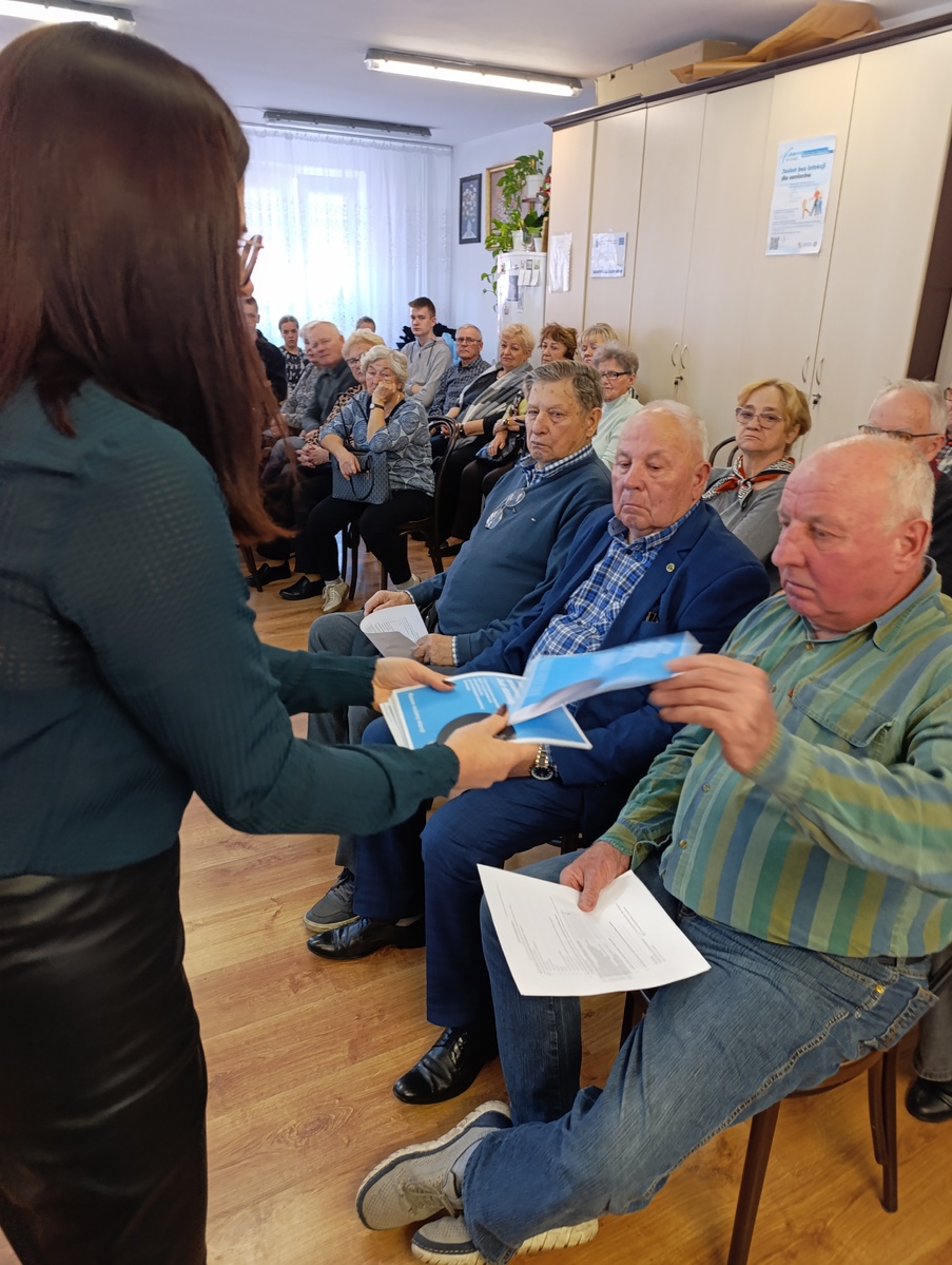 Nie zabrakło również tematów dotyczących przemocy wobec osób starszych. Zastępca Przewodniczącej Zespołu Interdyscyplinarnego ds. Przeciwdziałania Przemocy Domowej w Gminie Wyszków, Monika Beresińska przypomniała, że przemoc, to nie tylko widoczne obrażenia fizyczne, ale również upokarzanie, zaniedbanie czy zmuszanie do określonych zachowań. Wskazała miejsca, gdzie osoby doświadczające przemocy mogą szukać pomocy i wsparcia i podkreśliła, jak ważna jest reakcja i brak przyzwolenia ze strony społeczeństwa na stosowanie przemocy.