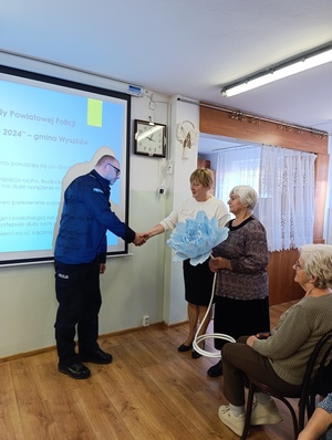 Podziękowania za zorganizowanie debaty społecznej poświęconej bezpieczeństwu osób starszych, na ręce I Zastępcy Komendanta Powiatowego Policji w Wyszkowie podinsp. Mariusza Matusiaka, złożyła kierownik Domu Dziennego Pobytu „Senior” w Wyszkowie – Dorota Wojtkowska wraz z przedstawicielką seniorów Jadwigą Szymanik.