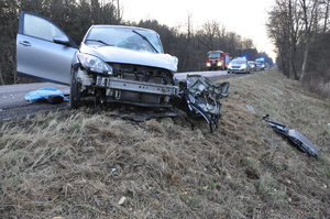Z wstępnych ustaleń policjantów pracujących na miejscu zdarzenia wynika, że kierowca Mazdy (59 lat) z nieustalonych przyczyn zjechał na przeciwległy pas ruchu doprowadzając do czołowego zderzenia z jadącym z naprzeciwka Land Roverem, za którego kierownicą siedziała 50-letnia kobieta. Siła uderzenia była na tyle duża, że Land Rover wypadł z drogi, wpadł do przydrożnego rowu i uderzył w drzewo.