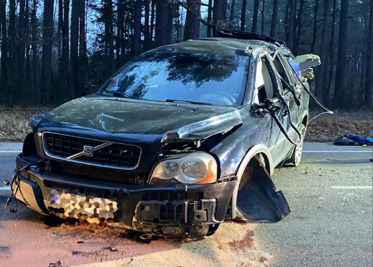 We wtorek (16 grudnia 2025 r.) wyszkowscy policjanci pracowali na miejscu zdarzenia drogowego, do którego doszło w Długosiodle na ul. Księcia Józefa Poniatowskiego. Ze wstępnych ustaleń funkcjonariuszy wynika, że kierujący osobowym Volvo 43-letni mężczyzna, jadąc od strony Starego Bosewa w kierunku Długosiodła, na łuku drogi stracił panowanie nad pojazdem, w wyniku czego zjechał na lewe pobocze, doprowadzając do dachowania pojazdu.