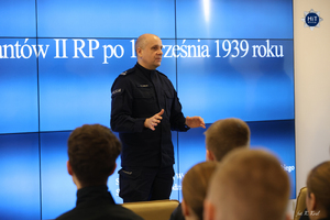 Na wstępie goście wysłuchali wykładu Stanisława Wojciecha Wykowskiego, wiceprezesa Warszawskiego Stowarzyszenia Rodzina Policyjna 1939 r. o powojennych losach funkcjonariuszy Policji Państwowej. Obecny był także prezes WSRP 1939 r. Michał Krzysztof Wykowski, członek Rady Historycznej Komendanta Głównego Policji. Prelegent przedstawił młodzieży trudną służbę funkcjonariuszy Policji Państwowej w czasach II wojny światowej oraz ich losy w czasach powojennych, gdy trzeba było dokonywać trudnych wyborów w zgodzie z własnym sumieniem oraz z poczuciem obowiązku.
