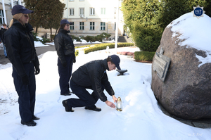 Na zakończenie, pod Obeliskiem „Poległym Policjantom – Rzeczpospolita Polska” goście zapalili znicz oraz minutą ciszy uczcili pamięć poległych i pomordowanych funkcjonariuszy.