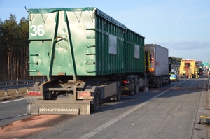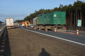 Następne zdarzenie miało miejsce o godzinie 16:00 w Budykierzu. 41-letni kierujący ciężarową Scanią, omijając bramę znajdującą się na terenie stacji paliw, nie zachował bezpiecznej odległości, doprowadzając do zderzenia z nią.