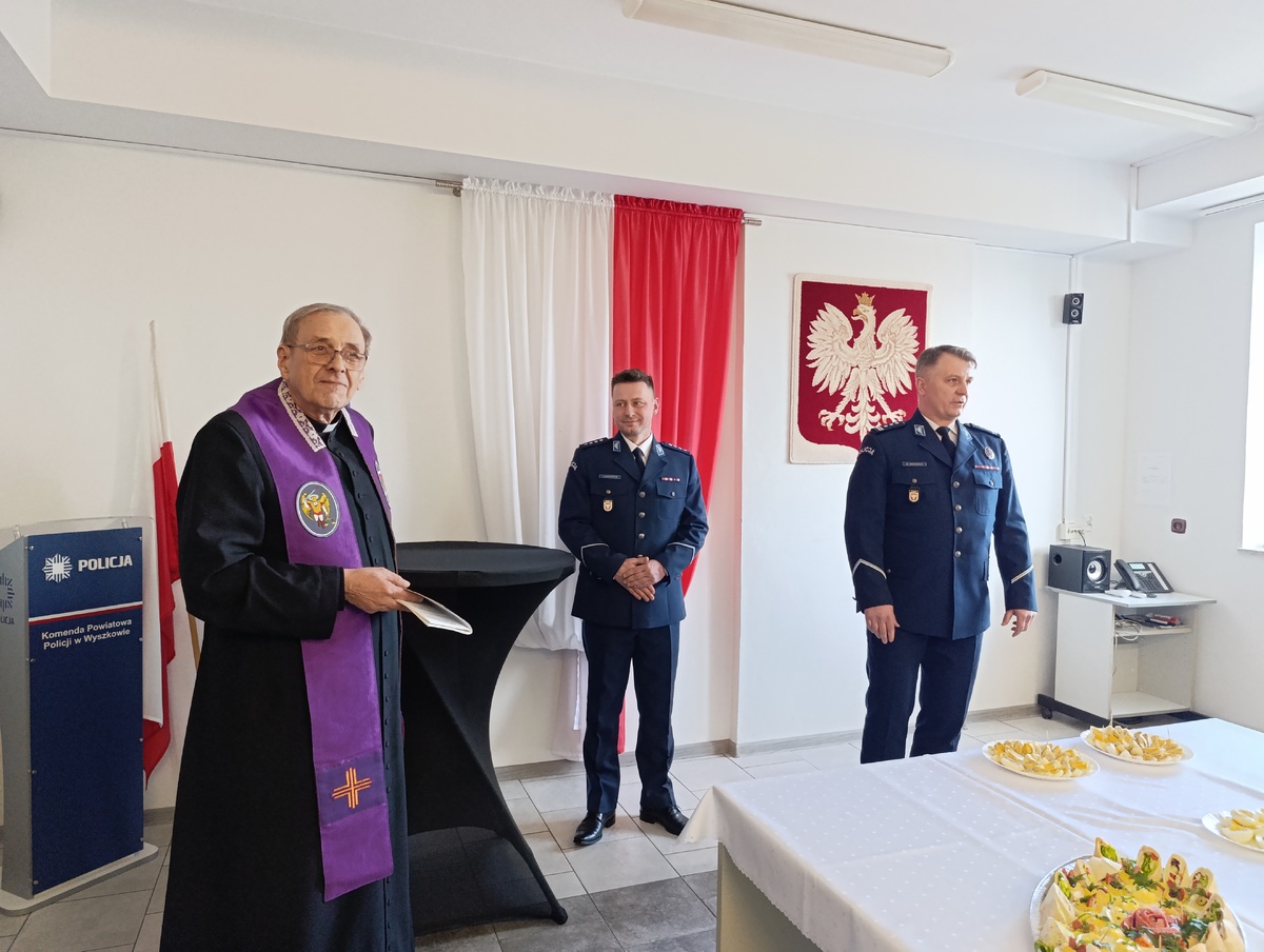 Dzisiaj (02.04) w wyszkowskiej komendzie odbyło się spotkanie wielkanocne, w którym uczestniczyła kadra kierownicza, policjanci, pracownicy cywilni oraz kapelan Policji ks. kan. Wojciech Goryszewski.