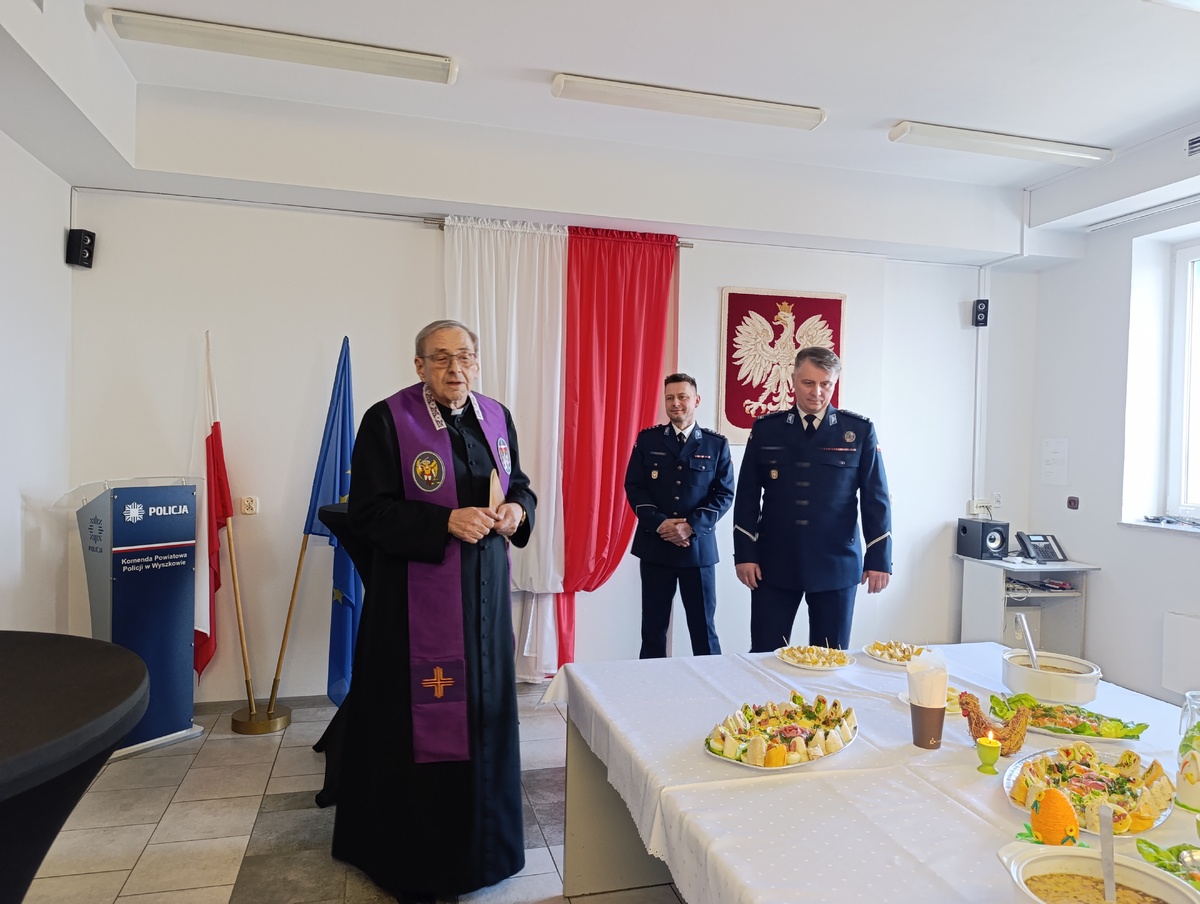 Święta Wielkanocne to czas refleksji, nadziei i odradzającej się wiary, który skłania do zatrzymania się w codziennym biegu i dzielenia się życzliwością. Dzisiaj w świetlicy Komendy Powiatowej Policji w Wyszkowie odbyło się uroczyste przedświąteczne spotkanie wielkanocne, podczas którego funkcjonariusze oraz duchowieństwo wspólnie celebrowali ten wyjątkowy okres.