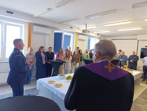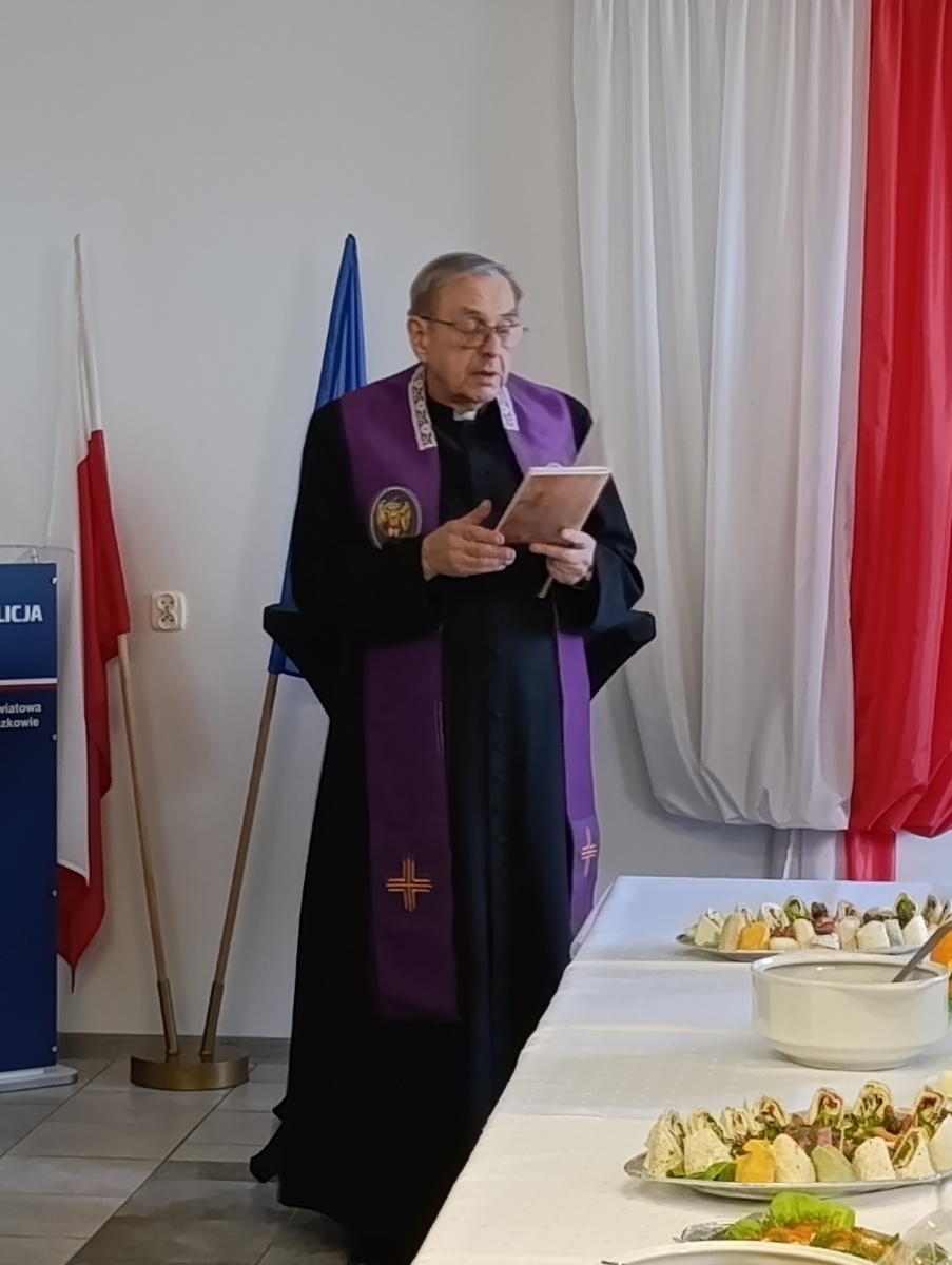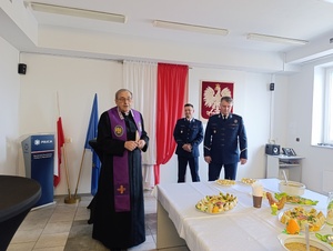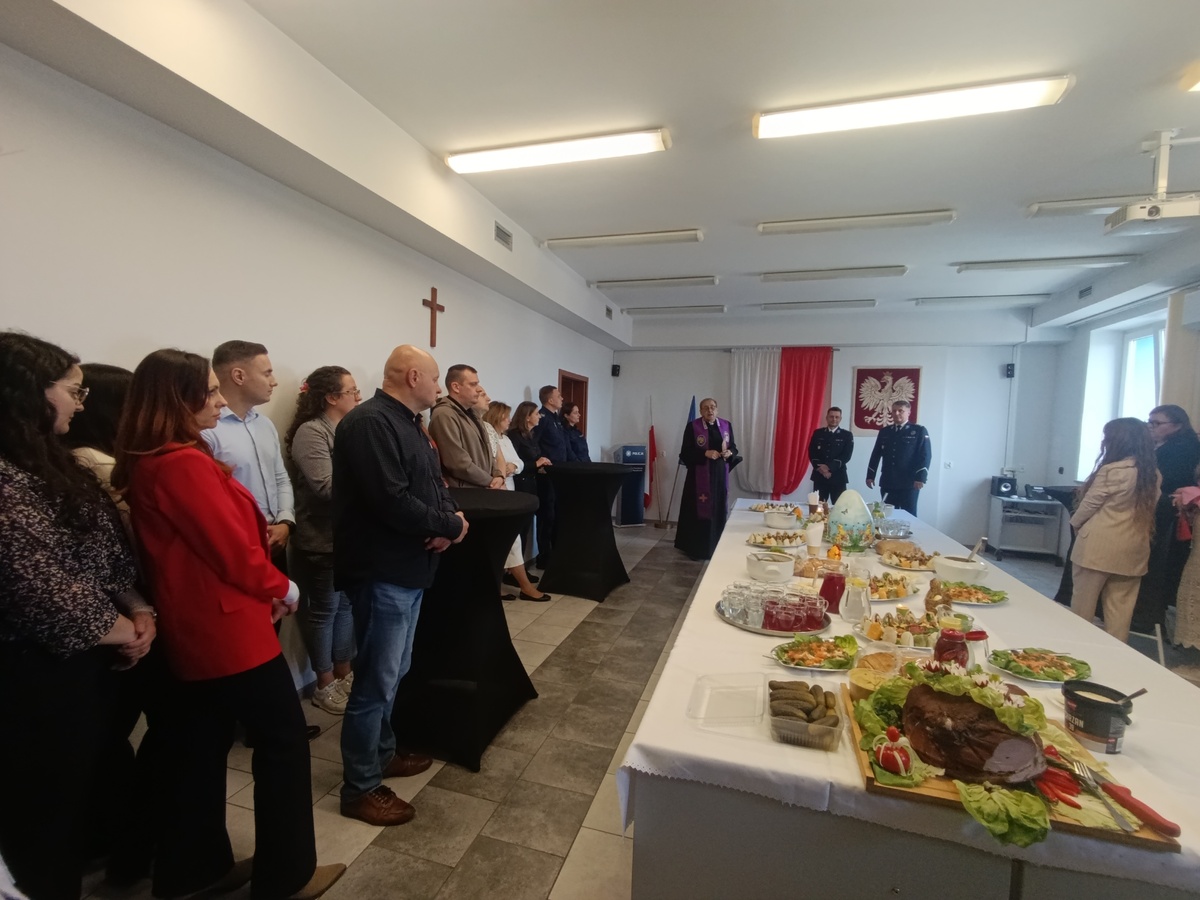 Ks. kan. Wojciech Goryszewski wygłosił Słowo Boże i dokonał poświęcenia wielkanocnego posiłku, zwracając się z życzliwymi słowami do funkcjonariuszy i pracowników Policji.