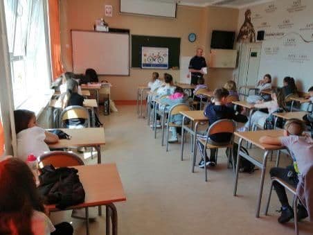 Kierownik drogówki zachęcał uczniów do jak najczęstszego korzystania z roweru, jako ekologicznego środka transportu oraz formy rekreacji i sposobu na przyjemne spędzenie czasu ze znajomymi lub rodziną. Wszystkie dzieci otrzymały kamizelki i opaski odblaskowe.
